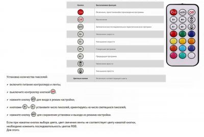 Инструкция по настройке пульта на 21 кнопку и контролера RF для светодиодной адресной ленты. Контролер: RF KEY 21